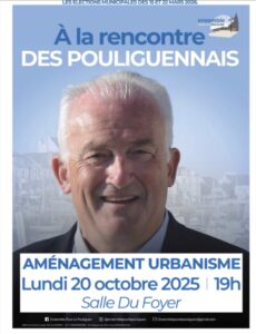 La liste Ensemble pour le Pouliguen conduite par Alain Doré organise sa deuxième rencontre avec les Pouliguennais le lundi 20 octobre 2025 à 19 h 00 à la salle du Foyer sur le thème aménagement et urbanisme.