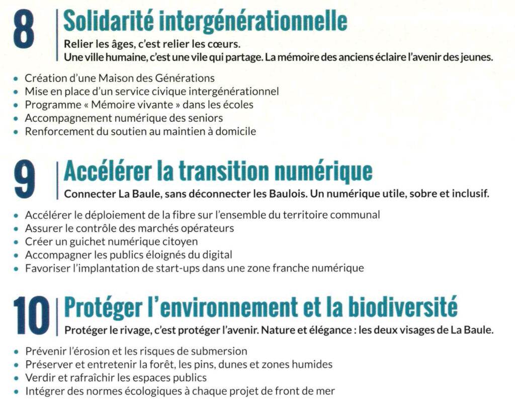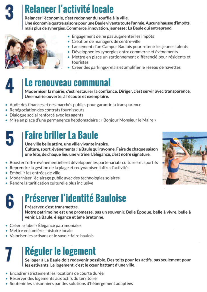 Se présentant comme « le maire de tous les Baulois », le candidat affirme vouloir redonner à La Baule son attractivité et son rayonnement, tout en menant des projets qu’il juge responsables et soutenables pour les finances locales.